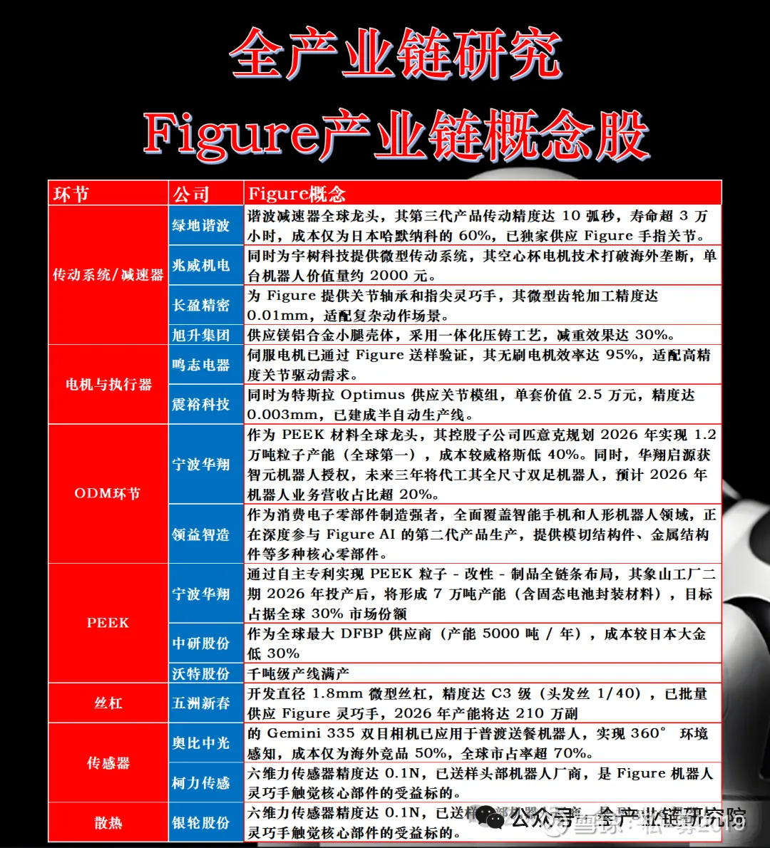 A:在行星滚柱丝杠领域,合作供应商包括双林股份、五洲新春、苏春亚、星舰传动及阿斯特等,其中星舰传动为当前主要供应商,其验证进度最快,已通过小鹏工厂环境测试,寿命达2万小时以上,并获得较大试作订单,但尚未完全定点,合作模式为批量试点而非量产定点。空心杯电机方面,供应商包括方正电机、拓普集团、兆威机电,其中拓普集团与微机电提供集成行星齿轮箱与伺服电机的模组试样,方正电机仅提供驱动电机。五环力矩电机供应商包括方正、拓普、布可股份,布可股份产品已通过前期验证测试,方正产品在肩部、肘部通过严格测试,但最终定点均未确定。
