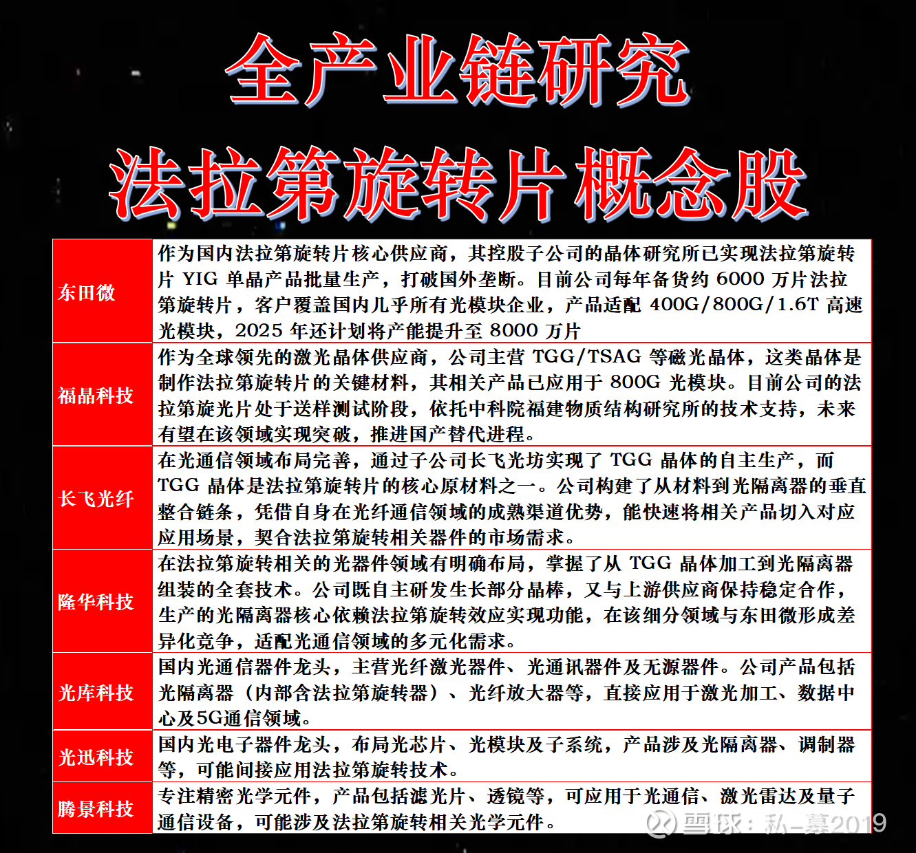 国内虽有突破,福晶科技月产能 2000 - 3000 片,厦门森一 1.2 万片、成都飞锐特 8000 片,但整体供给缺口仍大。需求端,2025 年 400G 与 800G 光模块对隔离器的需求就达 2.5 亿个,叠加其他规格及 1.6T 光模块需求,对应法拉第旋转片需求缺口显著。