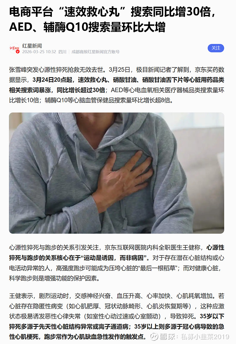 电商平台“速效救心丸”搜索同比增30倍,AED、辅酶Q10搜索量环比大增