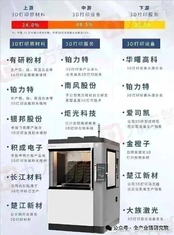 3D打印是发动机生产的核心技术路线,相比传统铸造、锻造工艺,具备一体化成型、粉末成型、降本减重、缩短交付周期的多重优势,适配航天发动机生产需求,渗透率提升是长期确定趋势。此前3D打印渗透率较低主要有两大原因:一是此前国内商业航天体量较小,未形成规模化应用场景,头部3D打印厂商重心放在其他盈利性更强、市场空间更大的领域;