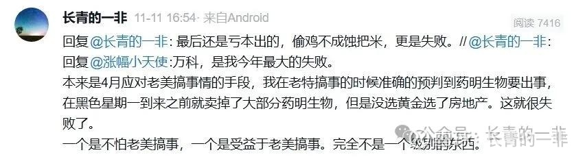 之前买万科,一方面是老美搞事防风险,一方面则是投机。买万科有投机属性,我也是公开说过的。