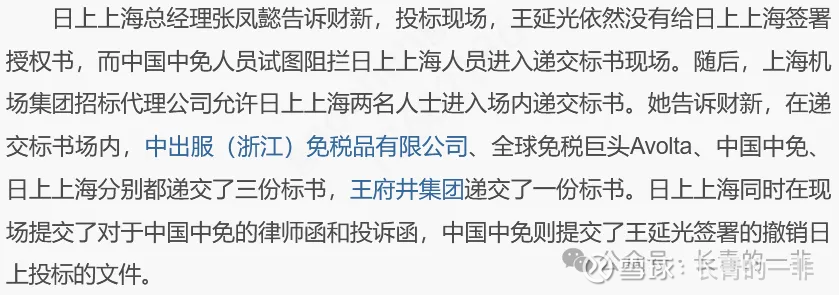 总之,中出服、dufry(即Avolta)、中免对3个标段都提了竞标,王府井只对1个标段竞标。日上由于大股东中免不同意,大概率出局。