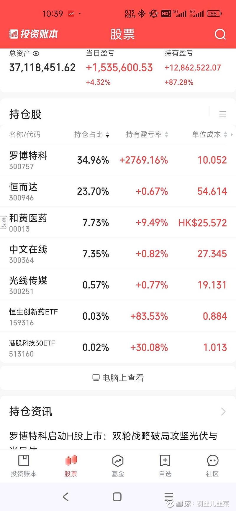 $罗博特科(SZ300757)$ $恒而达(SZ300946)$ $和黄医药(00013)$ 按计划进行大幅调仓,等待中美不确定性落地