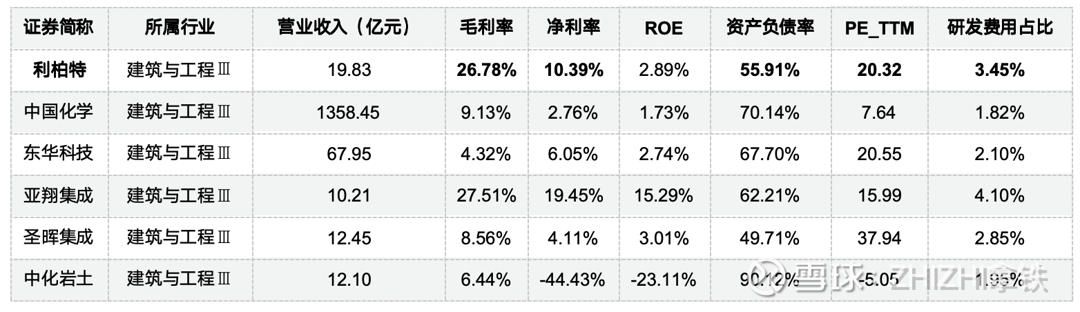 [7] 利柏特与东华科技等在2025年三季度的毛利率、净利率、ROE、资产负债率、市盈率PE_TTM