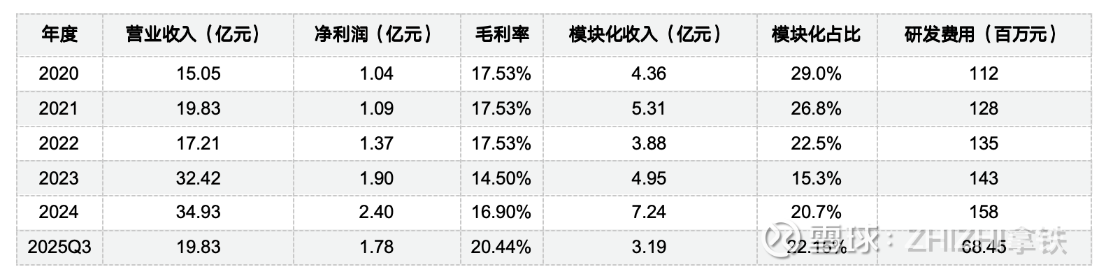 ● 2024–2025年:收入增速放缓,但毛利率回升至16.9%–20.4%,模块化收入占比重回20%+,显示公司主动优化业务结构,从“规模导向”转向“利润导向”。