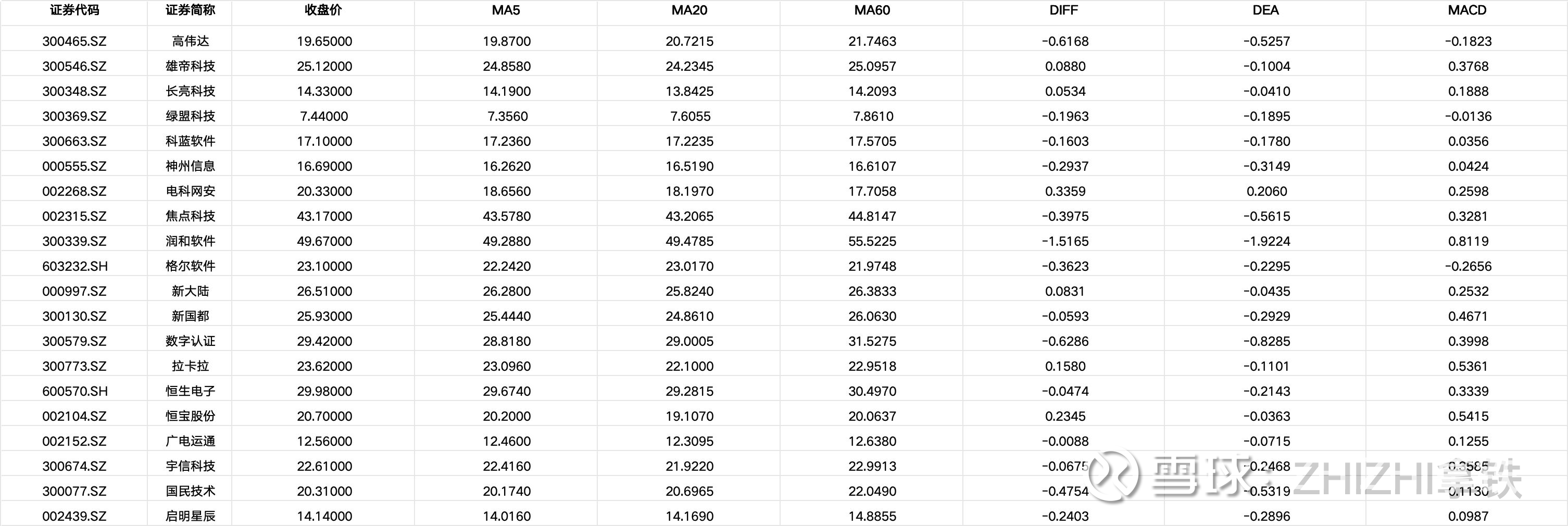 (1)明确多头:电科网安 (002268.SZ)、恒宝股份 (002104.SZ) 技术形态最强,呈现“价线多头排列 + MACD水上”的经典上涨格局。