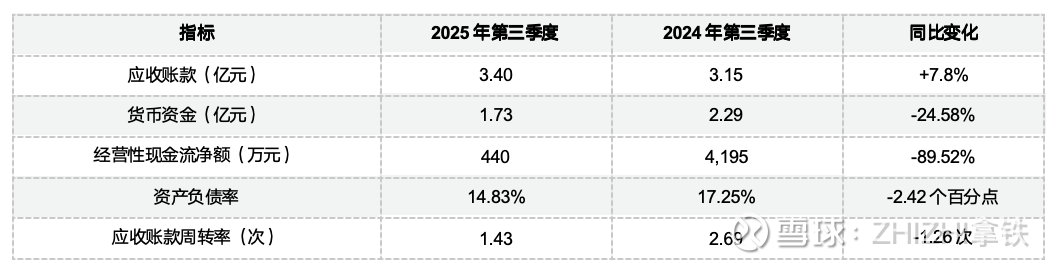 6. 应收账款风险:应收账款周转率从2024年第三季度的2.69次下降至2025年第三季度的1.43次,客户回款周期延长。[3]