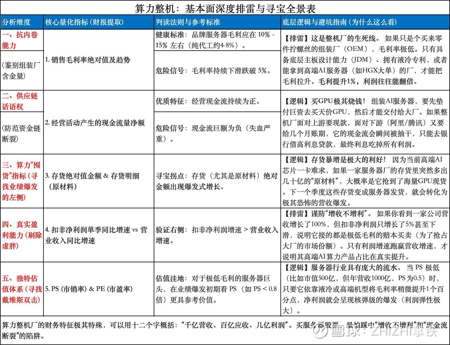 买整机厂,我们买的是流水(市销率PS)的扩张,以及“谁在疯狂囤积GPU(原材料存货)”。算力硬件中游的投资法则是:“重资产博弈看浪潮,长线护城河看曙光,高弹性加注液冷。”