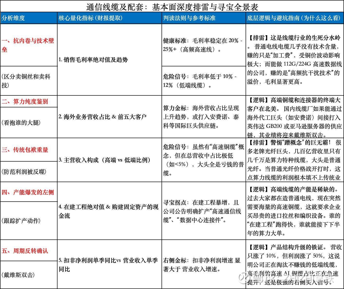 1. 通信线缆及配套:基本面深度排雷与寻宝全景表
