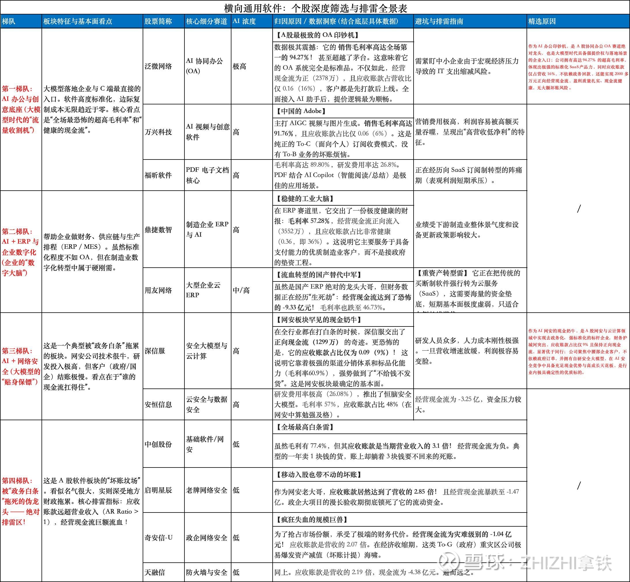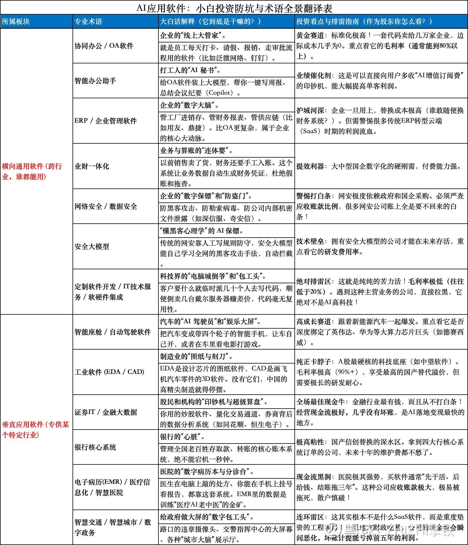 1. 垂直应用软件:基本面深度排雷与寻宝全景表