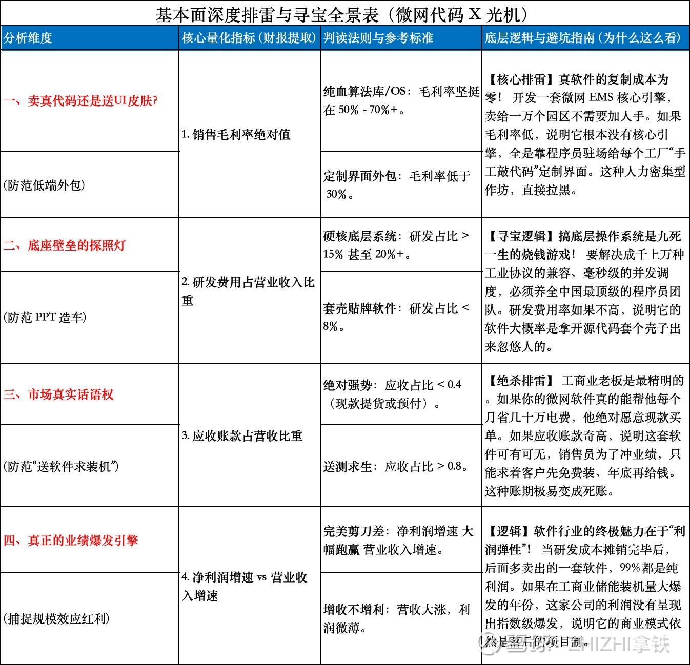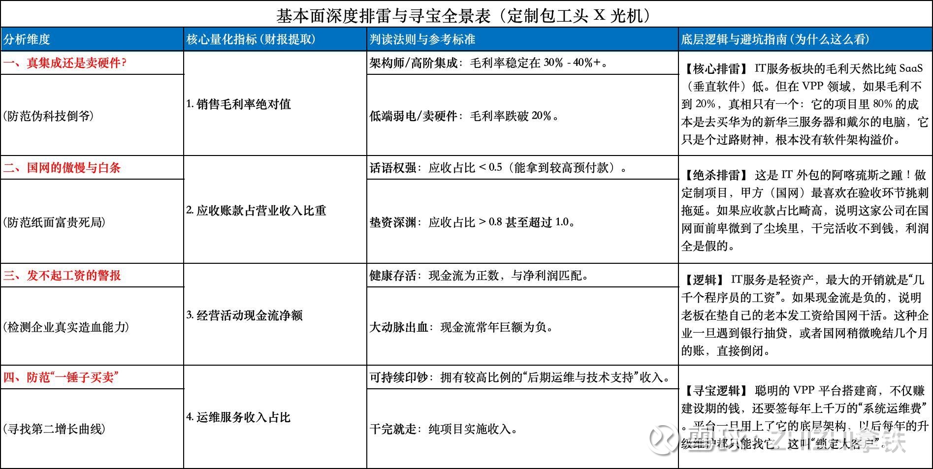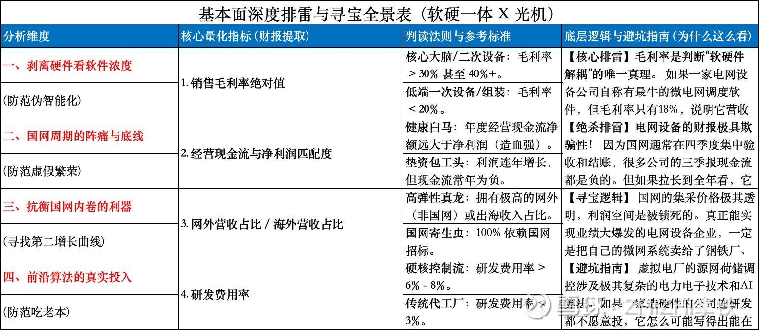 (2) 绝不买毛利率 < 30% 的伪科技:这说明它是去变电站给别人拉网线、装电脑的外包集成商。