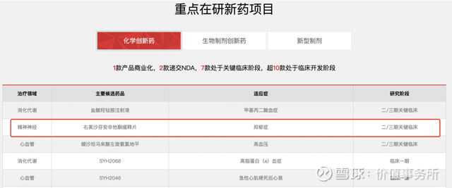 所以,抑郁相关的药真的非常有前景,石药的这款右美沙芬安非他酮缓释片是一种固定剂量的复方药物,含有氢溴酸右美沙芬和盐酸安非他酮两种成分,是美国已上市药物Auvelity的仿制药,现如今大家都被创新药洗了脑,所以对仿制药都相当忽视,但很多仿制药也是很有前途的,只要你是正儿八经的好东西,速度又快,公司的销售团队又足够厉害,那也能创造相当可观的营收,不然石药也不会在官网的重点在研新药项目中把这款列出来了。