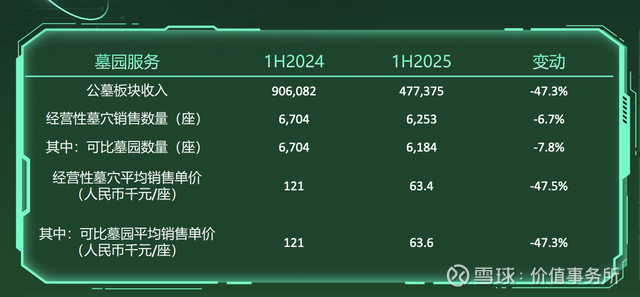核心就在于为公司贡献近78.1%营收的墓园服务出现了47.3%的下滑。