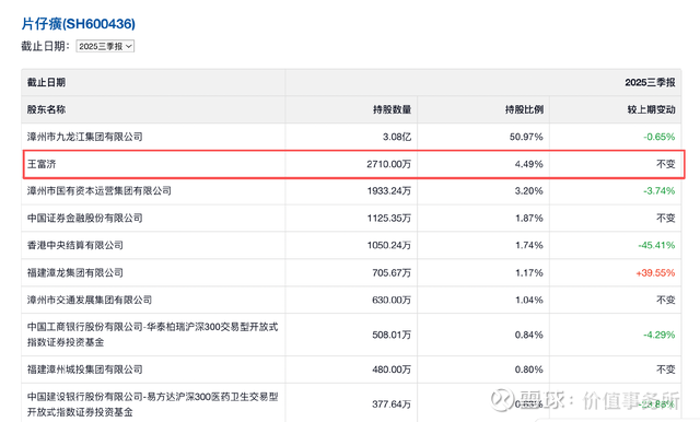 但二级市场却不乏很多通过长期持有优质公司、陪伴他们穿越一轮轮牛熊而后收获颇丰的大神,这其中最典型的案例莫过于片仔癀的王富济(散户),在片仔癀有记录的股东名单中一直都有王富济的名字,从未卖过,甚至只要一跌就买,已然是片仔癀分量不轻的二股东了。
