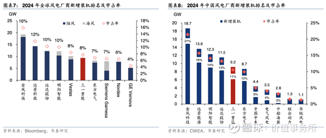 现如今,三一重能已经成长为了全球第六、中国第五的风电整机制造商,而且市占率还在不断提高,2024年国内市占率已经提升至了10.5%。