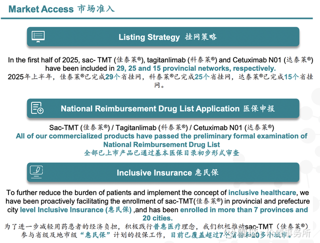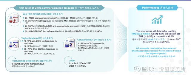 可就是这样,2025H1公司还是实现了3.1亿的商业化销售额,几乎全由Sac-TMT贡献。基本只有一款产品在售就能有这样的成绩,下半年还有三款产品在售,预估2025年实现10亿营收其实都有点保守。