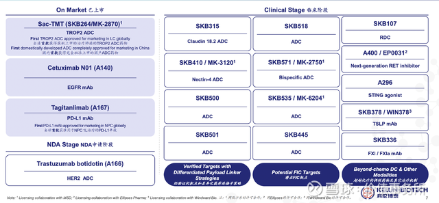 值得注意的是,科伦博泰其实早于大部队2、3年就出海了,是国内第一家将自主研发的ADC授权给跨国大药企的企业。早在2022年5月、7月,科伦就与默沙东达成了SKB264、SKB315 两款产品的合作,又于当年12月与默沙东达成七项临床前 ADC 资产的合作,是迄今为止最大的国内企业生物制药对外许可交易。