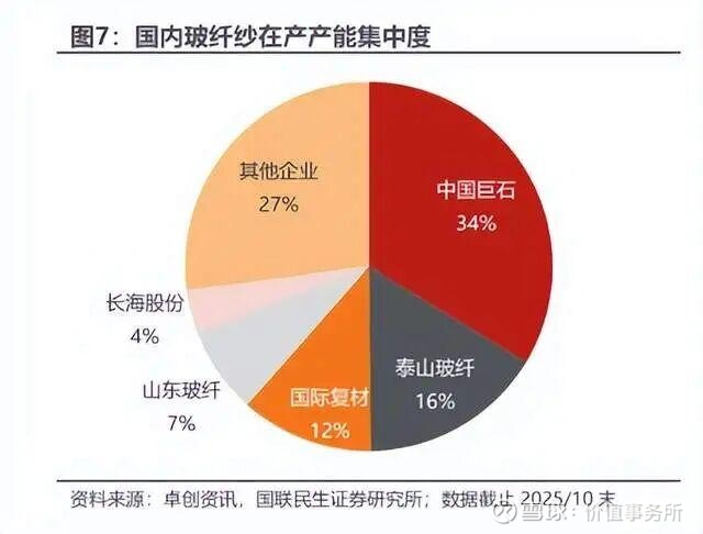 截至2024年年底,中国巨石、泰山玻纤、山东玻纤、国际复材、长海股份这五大龙头占据了国内玻纤产能的71%,CR3更是达到了60%。