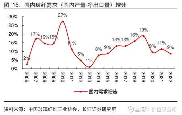 总体来说,按照最保守的预测,未来传统玻纤也能至少保持年化0-5%的增速,如果建筑、新能源车、风电光伏有一个行业发展给力一些,超过5%也完全是可以做到的。