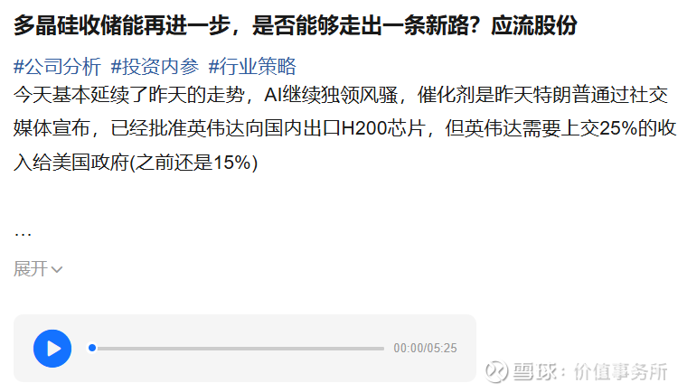 今天基本延续了昨天的走势,AI继续独领风骚,催化剂是昨天特朗普通过社交媒体宣布已经批准英伟达向国内出口H200芯片,但英伟达需要上交25%的收入给美国政府(之前还是15%)。