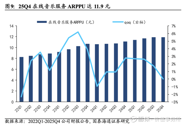 不知不觉间,腾讯音乐其实已经相当赚钱了,增速还相当可观。照目前的趋势下去,哪怕腾讯音乐没有新的盈利方式,只增长付费会员渗透率(当下24.1%)以及想办法提升月 ARPPU(当下11.9元),两者累计起来中短期至少还有三倍空间可看。