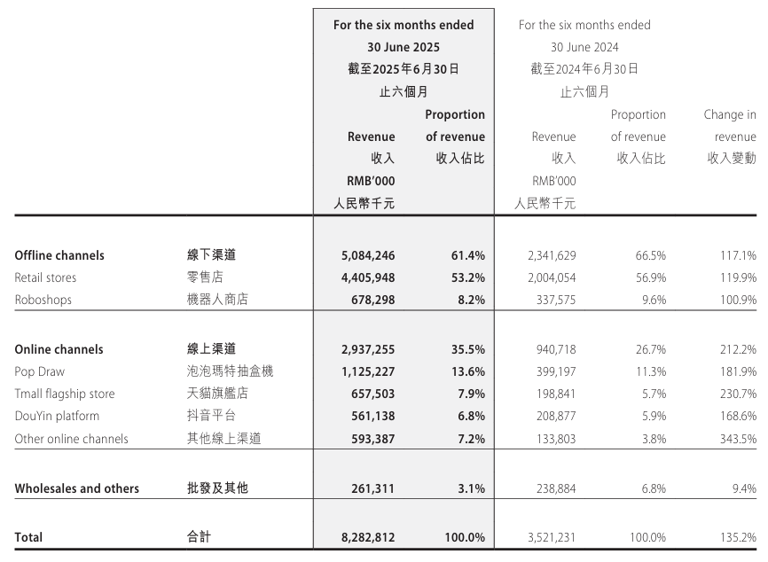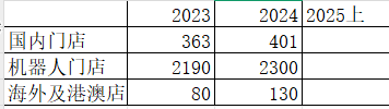 按照中期业绩指引数据,国内门店2025年年底大概在410家,而国内增长速度较快的反而是机器人门店,截至2024年底全球已投放2597台(中国内地2300台、海外297台),2024全年实现收入约7.0亿元,同比增长26.4%,占内地线下收入的18%,从单台年销售额约33万元,坪效远高于普通零售店;平均1-2个月达到盈亏平衡,现金回收期4-5个月。