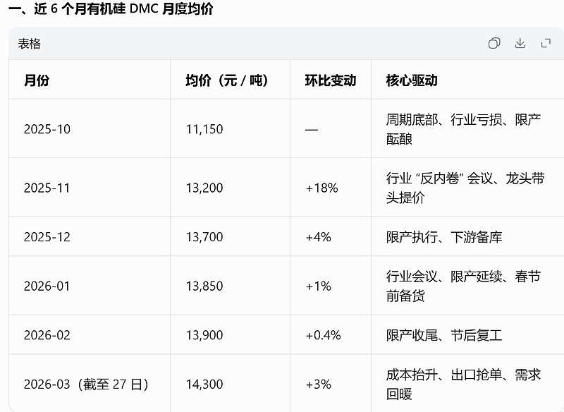 $东岳集团(00189)$ 2025年业绩最大的问题是有机硅的亏损,有机硅DMC的价格从2021年6月最高点60000元/吨下滑到2025年最低点10200元/吨,在行业控产能的情况下,目前已经回升至13000元/吨以上,有机硅的完全生产成本大概是9500元/吨,目前情况下,算上所有费用,基本能保本。如果今年不发生停产事故,价格稳定在13000元/吨,东岳硅材也将会有所盈利。
