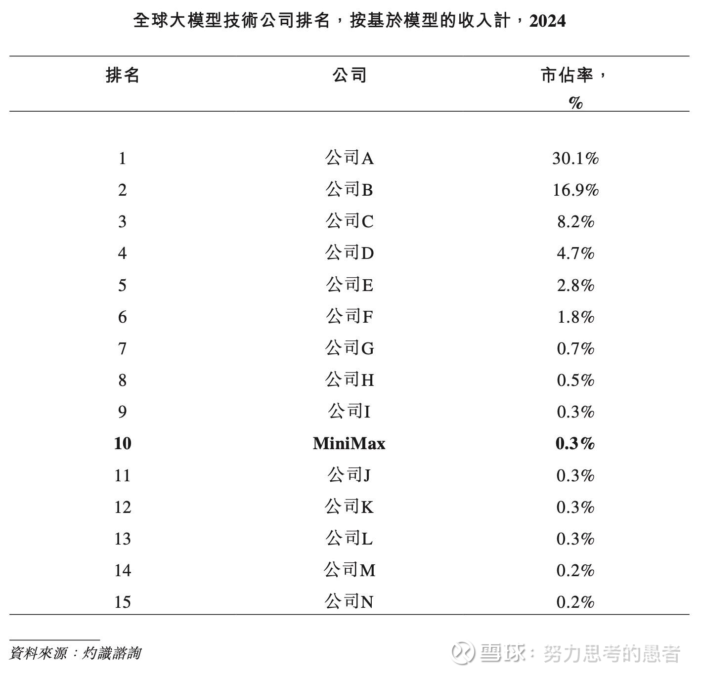 还有一个区别是MiniMax海外收入比重较大,海外收入占比:约 73.1%。具体构成:中国内地仅贡献了 26.9% 的收入。其余大部分来自海外市场,其中新加坡占 24.3%,美国占 20.4%,其他国家和地区合计占 28.4%。智谱的海外占比仅为 9.8%。MiniMax 自创立之初就推行全球化策略,每款模型和产品均在国际市场同步上线;其核心收入支柱如 Talkie(面向国际市场的 AI 社交平台)和 海螺 AI(全球流行的视频生成平台)主要通过苹果 App Store 和 Google Play 等全球渠道分发,具有天然的全球化变现能力;其开放平台也是全世界最大的企业级及开发者开放平台之一,服务全球 100 多个国家和地区的客户。