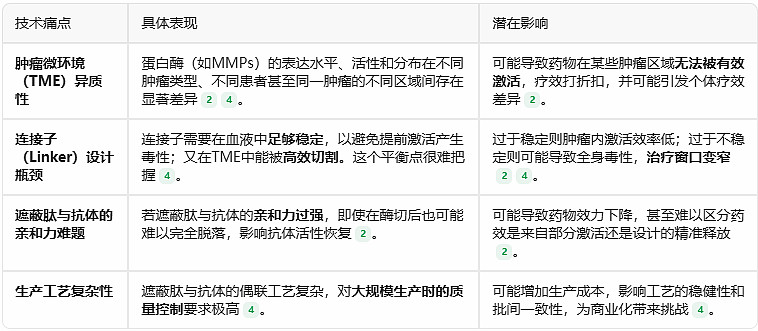 目前利用酶切割连接子是主流的设计,但是由于肿瘤异质性,设计的时候就会把这个连接子设计成多种酶可切割,同时这个遮蔽肽挂在抗体的哪个部分也存在knowhow。