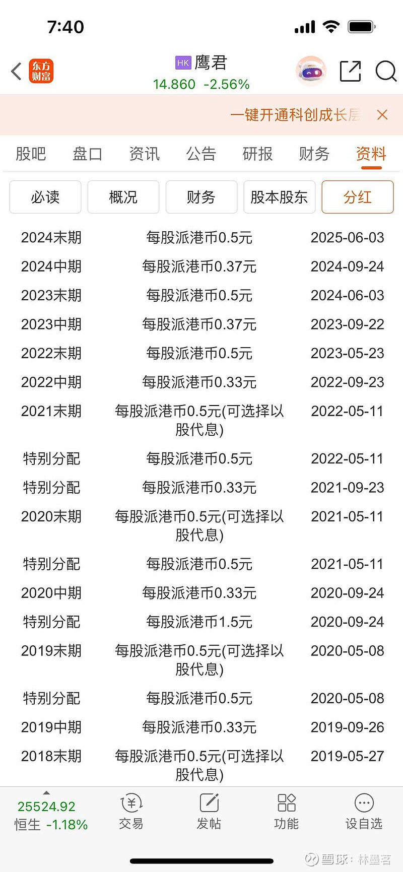 股票派送不算/期末活着明年可能的额外特别分红不算,14.86股价保底股息6.1%税前,参考以往特别分0.5的话一年内股息可达1.41合9.5%。