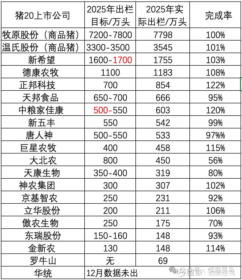 2、目前猪20上市公司,2025年商品猪出栏数(不含仔猪)是19152万头,同比去年16767万头,增14.22%。