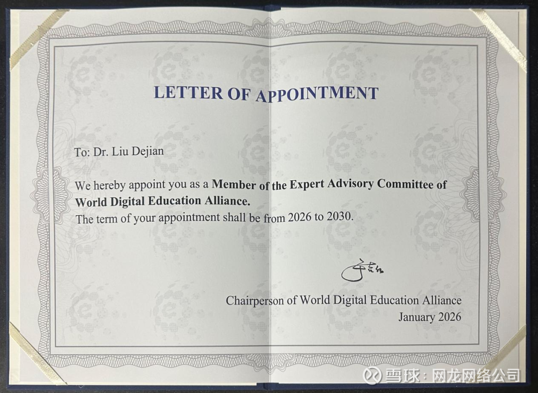此次刘德建博士获聘为专家咨询委员会专家,不仅是对网龙在全球数字教育领域实践成果的高度认可,更标志着网龙将在联盟战略规划、标准制定与旗舰项目推进中发挥更关键作用。未来,网龙将继续携手世界数字教育联盟,以技术创新驱动教育变革,共筑人类教育命运共同体。