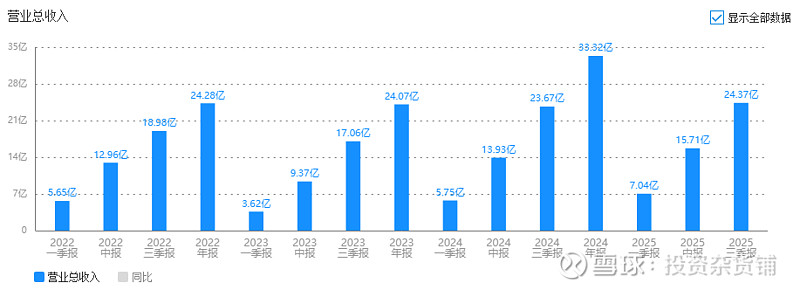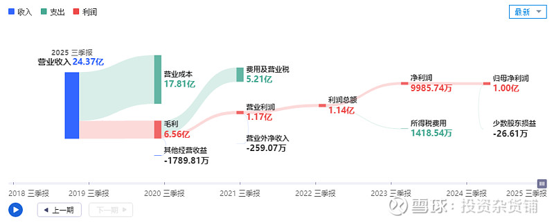 2025年三季报,公司前三季度实现营业总收入24.37亿元,同比+2.9%,扣非净利润1亿元,同比-54%,净利润下降很多。
