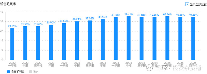 公司2025年前三季度实现营收20.56亿元(YoY-4.16%),归母净利3.00亿元(YoY-11.35%)。其中单三季度实现营收7.04亿元(YoY-8.14%),归母净利1.00亿元(YoY-15.57%),Q3毛利率为40.12%,同比增长1.85pct,环比增长0.32pct,整体上公司业绩是在下滑的。