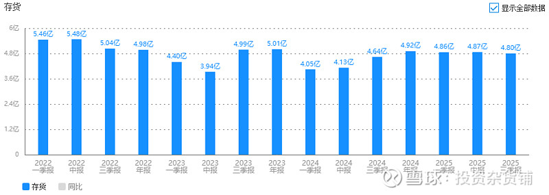公司存货4.8亿,同比+3.5%,存货周转率2.53,微降,说明公司动销能力也是有所下降。
