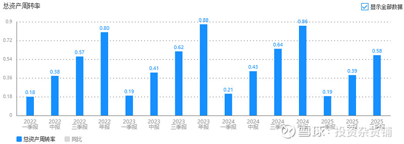 2025年前三季度0.58,微降,说明公司经营效率确实有点下降,营收微降也体现这一点。