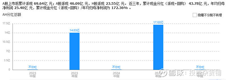 最后说分红:2024年分了17亿,占净利润一半,不算多也不算少;当前股息率4.26%,想靠分红“躺赚”的话,只能说“中规中矩”,不算特别香。