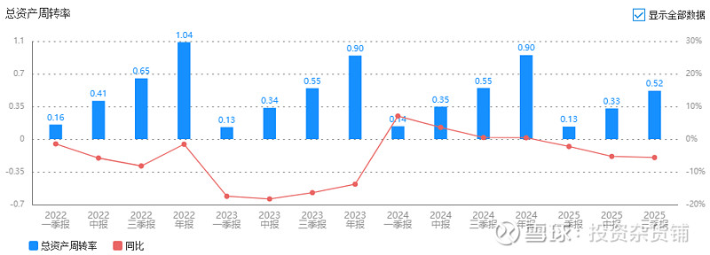 资产周转率2025年前三季度0.52同比-2%,说明公司的经营效率没有变化。
