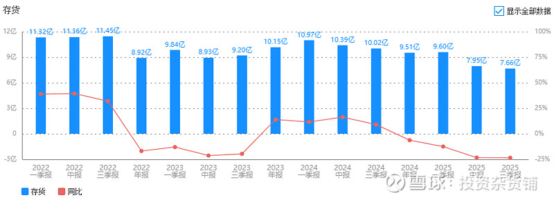 公司2025年前三季度存货7.7亿,同比-24%,存货周转率2.3,同比7%,说明公司动销能力有所提升。