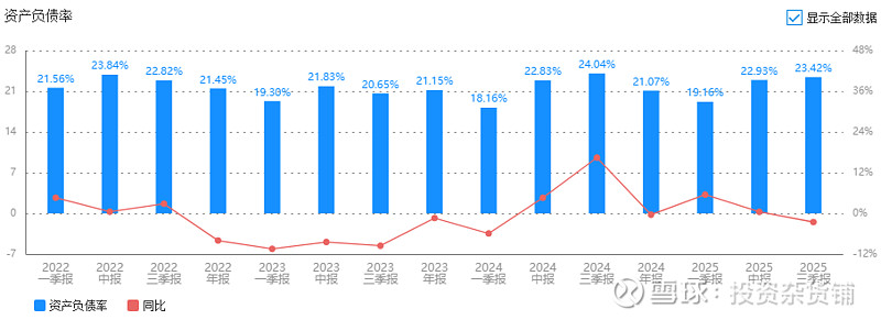 资产负债率2025年23%同比-2.6%,公司负债健康。