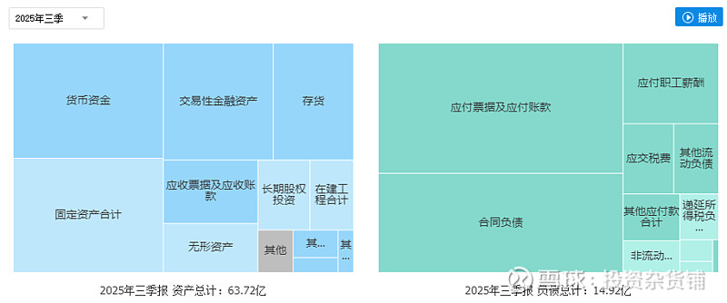 资产端,固定资产148亿,占总资产22%,属于较重资产的公司,货币资金14亿,金融资产10亿,共占总资产38%,公司资金较正常。