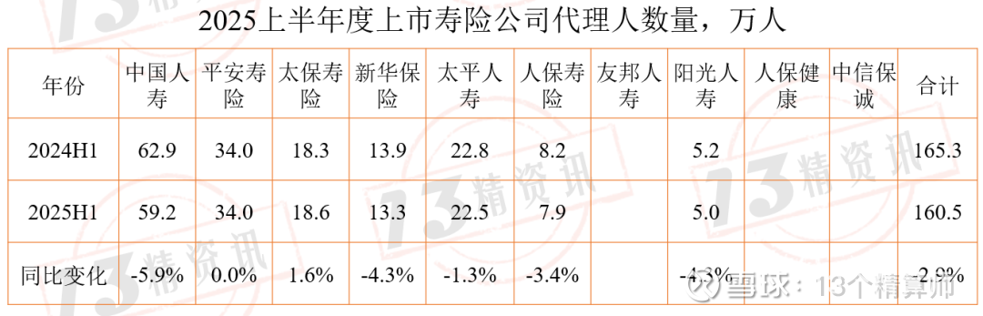 有统计数据的七家上市公司来看,2025上半年度代理人数量160.5万人,同比下滑了2.9%。