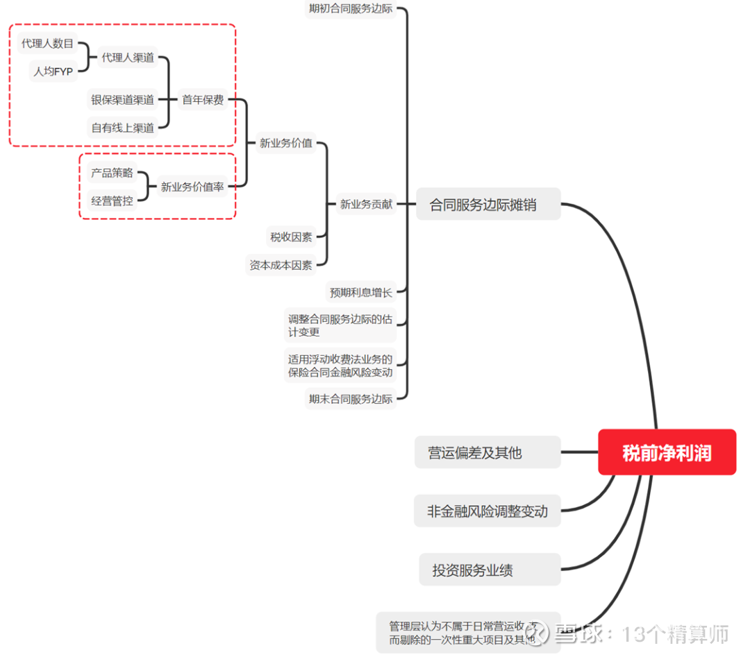 最后,“13精”概况总结近年来寿险行业新业务价值变化的影响因素: