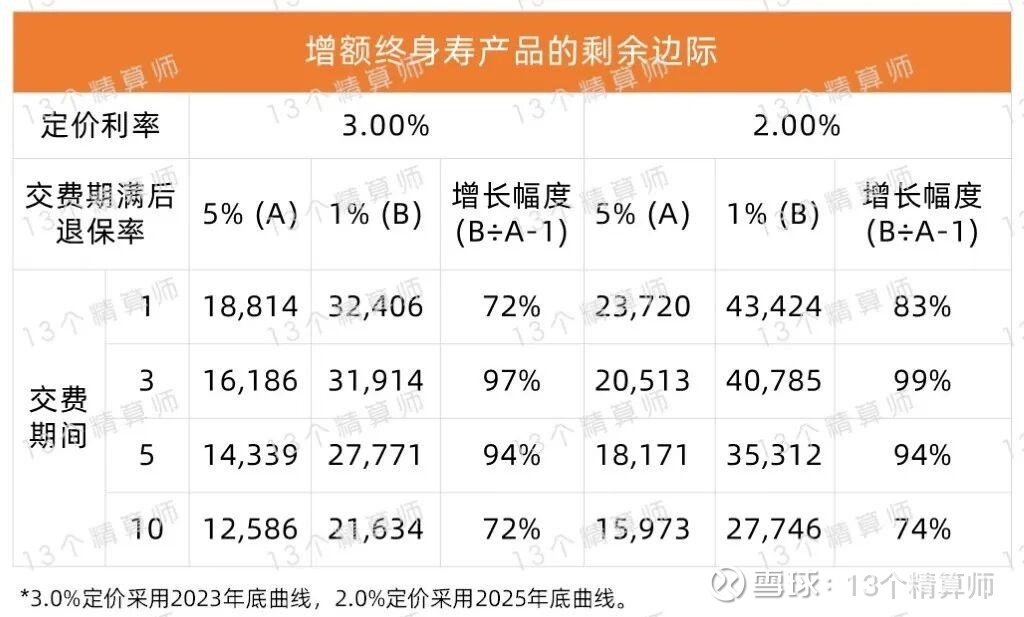 不同公司对行业主流产品的退保率假设是不一样的,这个假设对公司的剩余边际影响最大。