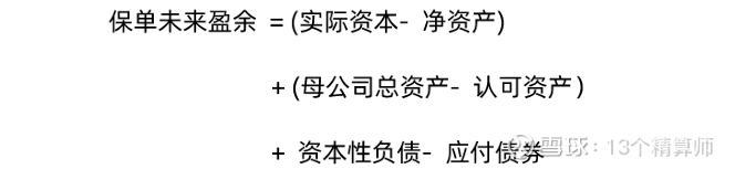 公司公布的偿付能力报告中,分别列示了会计和偿付能力下的准备金负债,我将这二者之差称为ACCIF,就是现有存量保单对实际资本的贡献。如果再减去可能的10%"所得税准备"以及在公司层面的"现金价值保证"的影响,那么结果就是偿二代二期下定义的"保单未来盈余"。