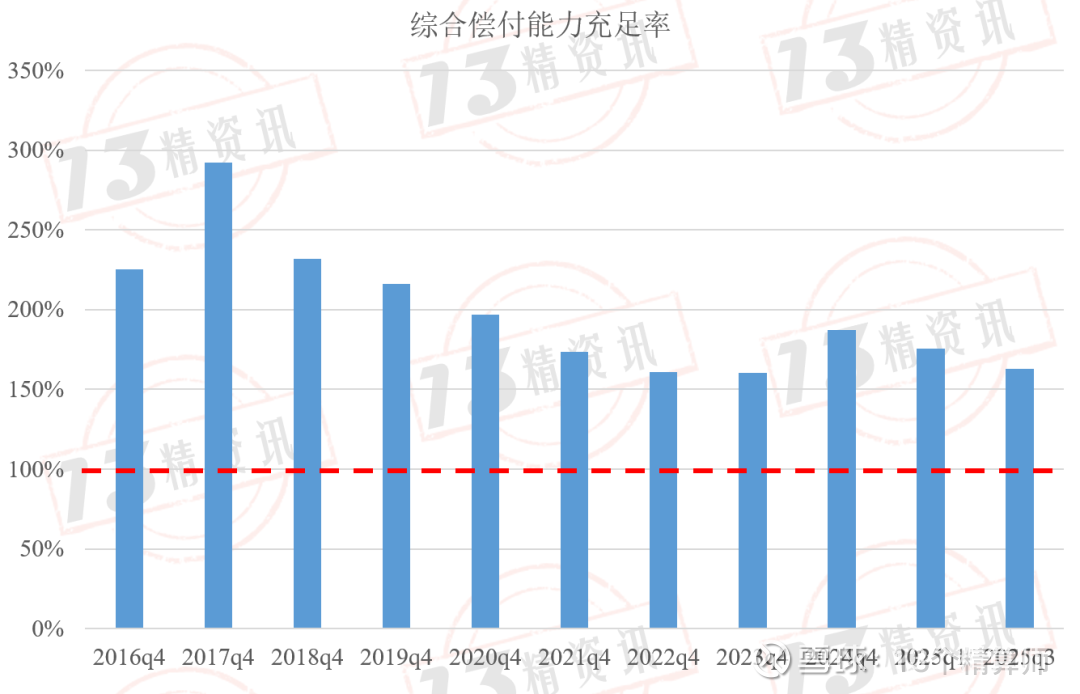 2025年第3季度陆家嘴国泰的综合偿付能力充足率为162.6%,高于监管红线的100%。