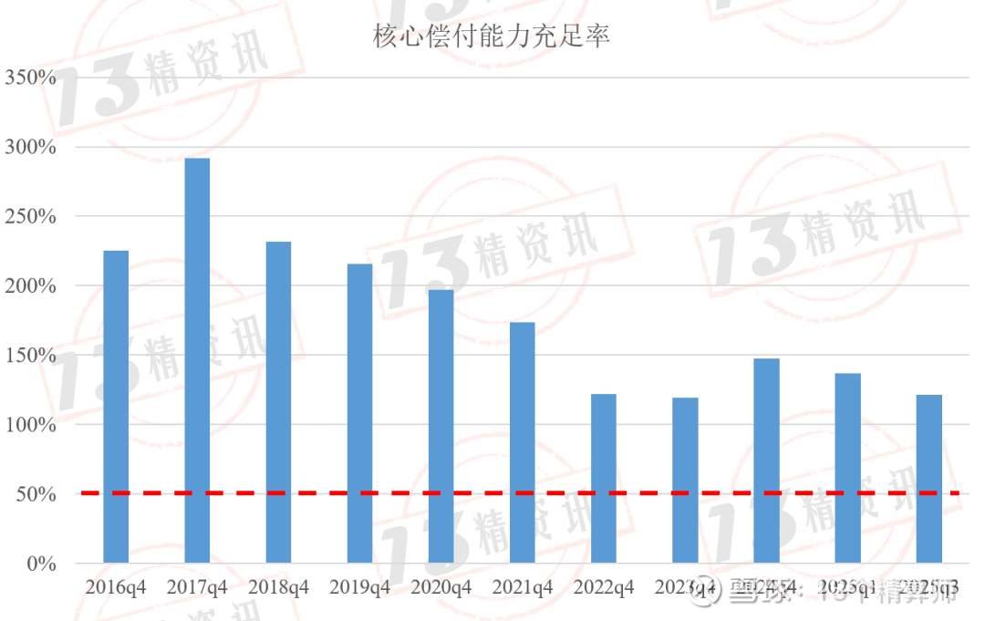 核心偿付能力充足率为121.6%,高于监管红线的50%。
