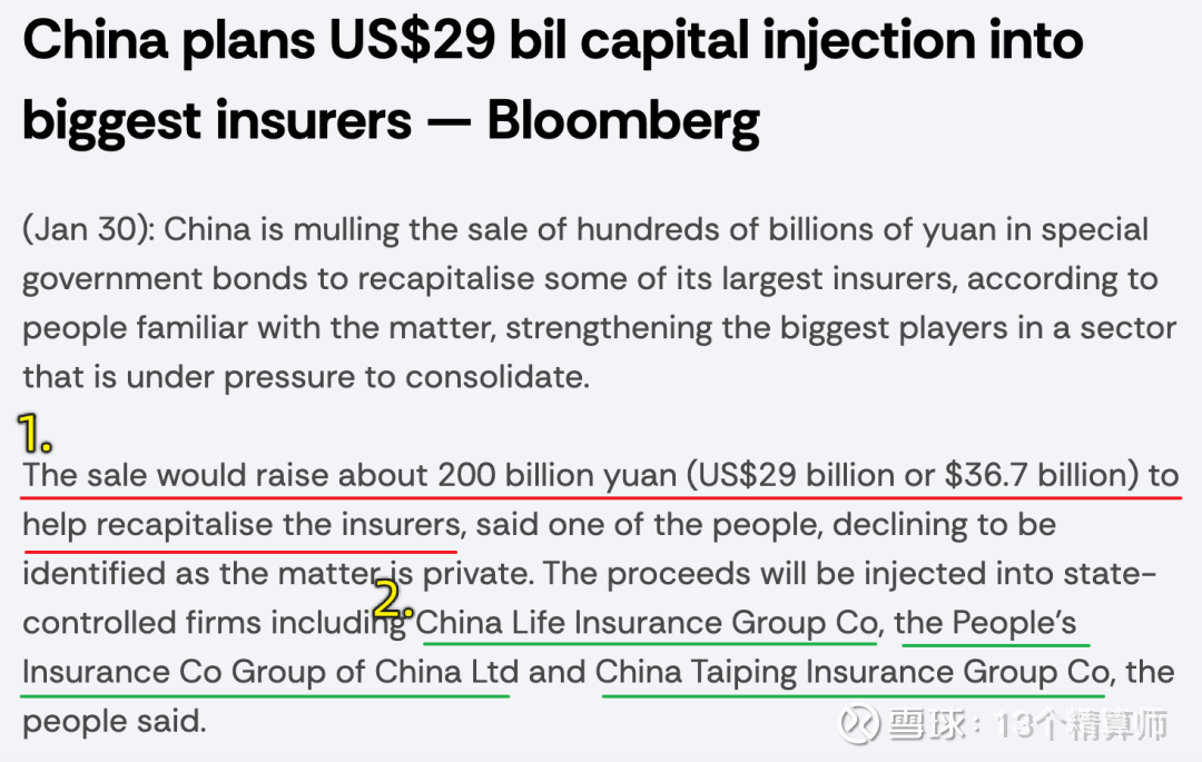 1月30日,彭博发文“中国计划发行2000亿特别国债,对大型保险公司注资”,这背后有三件事儿较为重要。