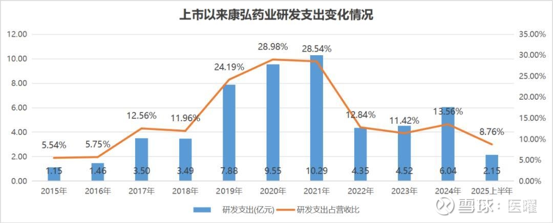 因此康柏西普的红利期还有多长,已经不好说了。康弘药业自身也是危机感十足,2019年以来研发支出总计将近45亿元,年平均占营收比接近20%,在国内药企中也属罕见。