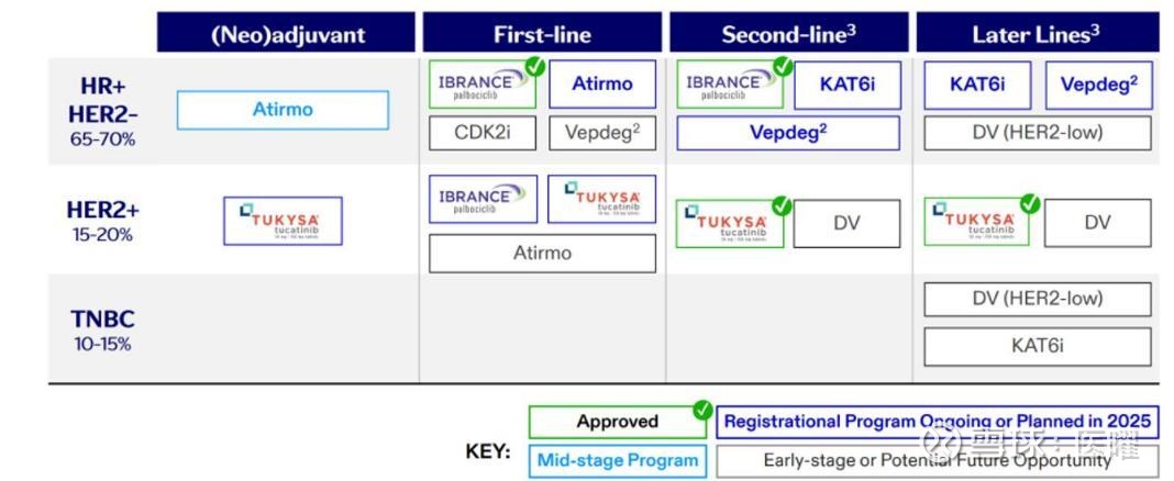 尽管辉瑞当年退出PAM通路赛道,但并未降低对乳腺癌领域的关注度,反而将更多精力聚焦于PROTAC药物(Vepdeg)、KAT6抑制剂、CDK4抑制剂(Atirmo)及CDK2抑制剂等前沿方向。这些布局的核心逻辑,多是希望通过直接革新CDK4/6抑制剂的治疗范式,从根源上解决其耐药性难题。